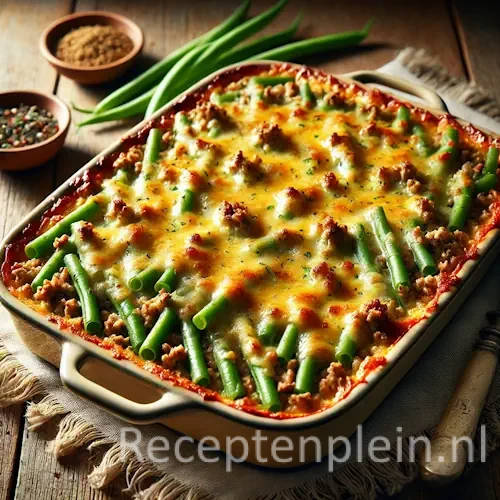 Deze sperziebonen-gehaktschotel is een heerlijke Hollandse klassieker die perfect past op een doordeweekse avond. Het is een eenvoudig ovengerecht met verse groenten, mals gehakt en een romige topping van zure room en kaas. De combinatie van sappige sperziebonen en hartig gehakt zorgt voor een rijke, volle smaak die zowel kinderen als volwassenen aanspreekt.